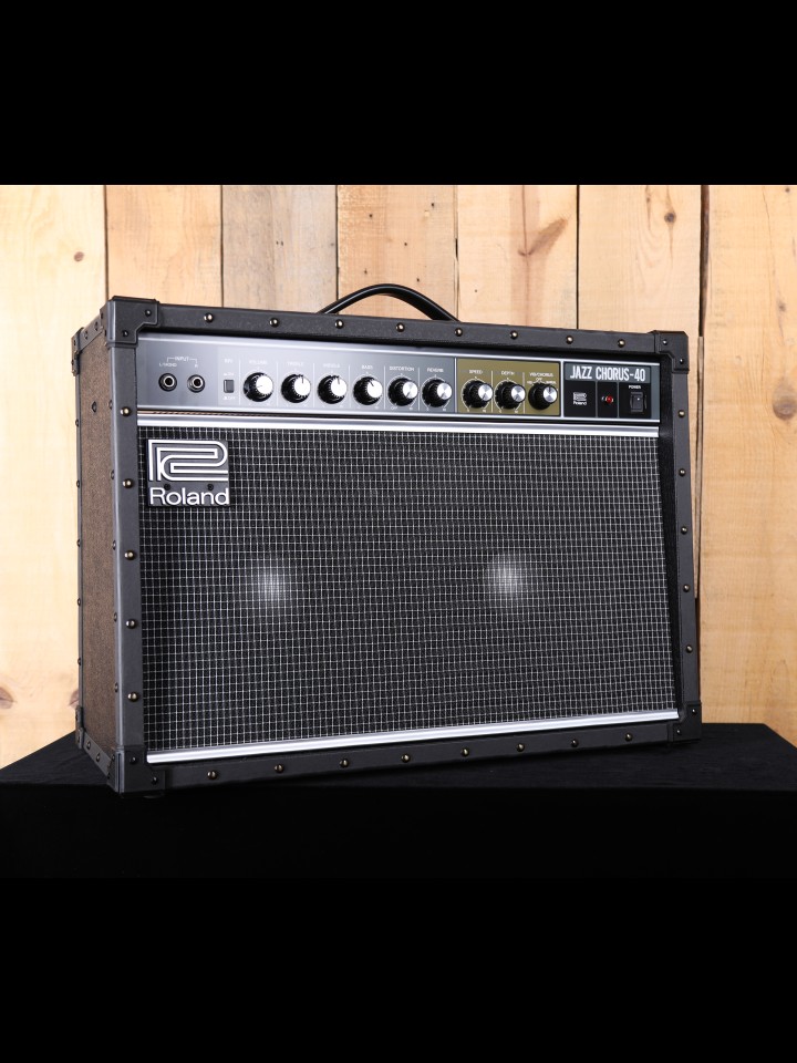 “The JC-40 Jazz Chorus delivers Roland’s renowned “JC clean” tone and signature stereo chorus effect in a compact combo amp with evolved features for the modern guitarist. Like the flagship JC-120 amp that it’s based on, the JC-40 offers a classic stereo clean sound that’s a perfect palette for tone shaping with stompbox effects. Now, there’s also a true stereo input for enhanced performance with stereo effects pedals, guitar synths, amp modeling gear, and multi-effects. In addition, the JC-40’s onboard effects include newly added features and updated sounds to support the needs of today’s players.” – From the Roland Website