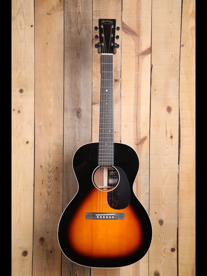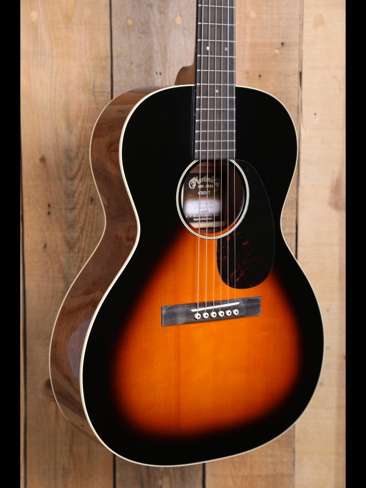 "Reminiscent of models from the “Golden Era”, the CEO-7 features a sunburst finish, golden age tuners and authentic headplate lettering. This new 14-fret short scale 00 “sloped shoulder” model features a solid Adirondack spruce top with solid genuine mahogany back and sides for complex tonality." - From the Martin website