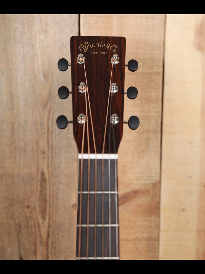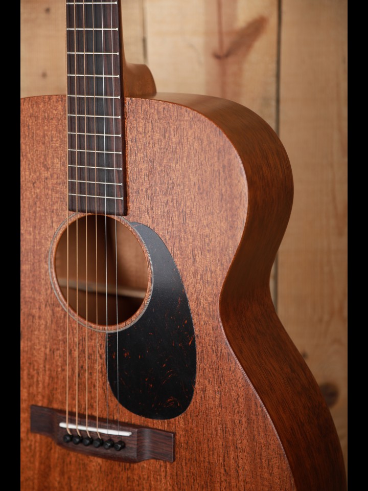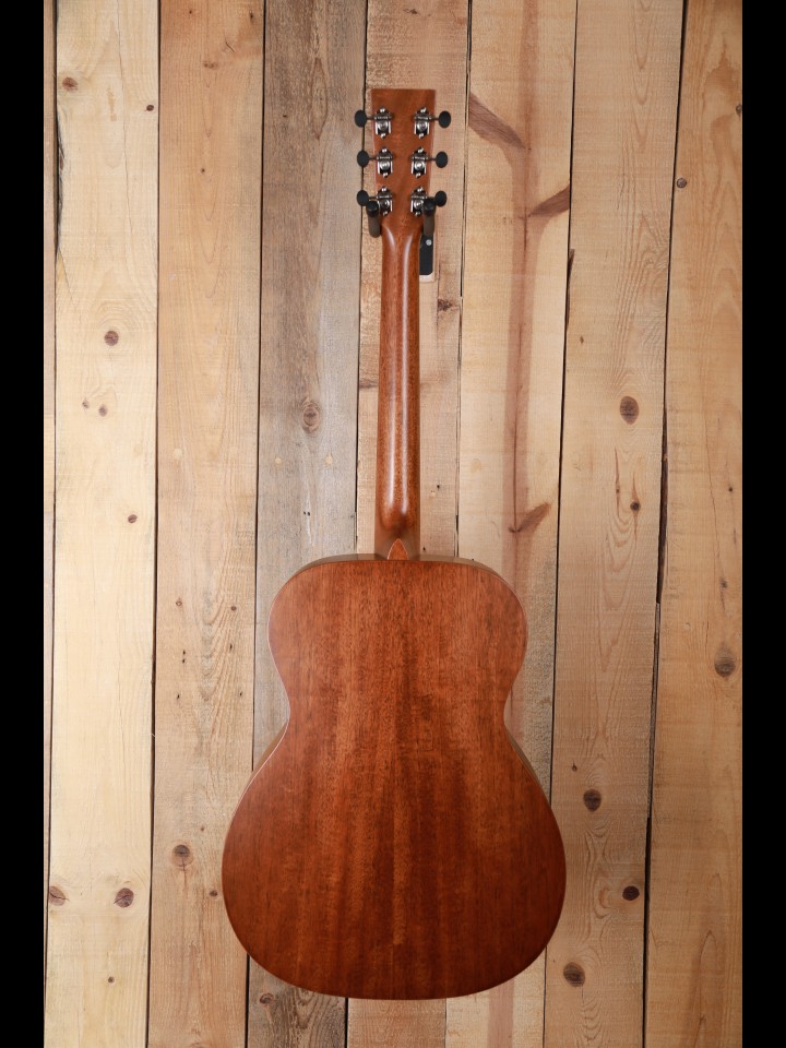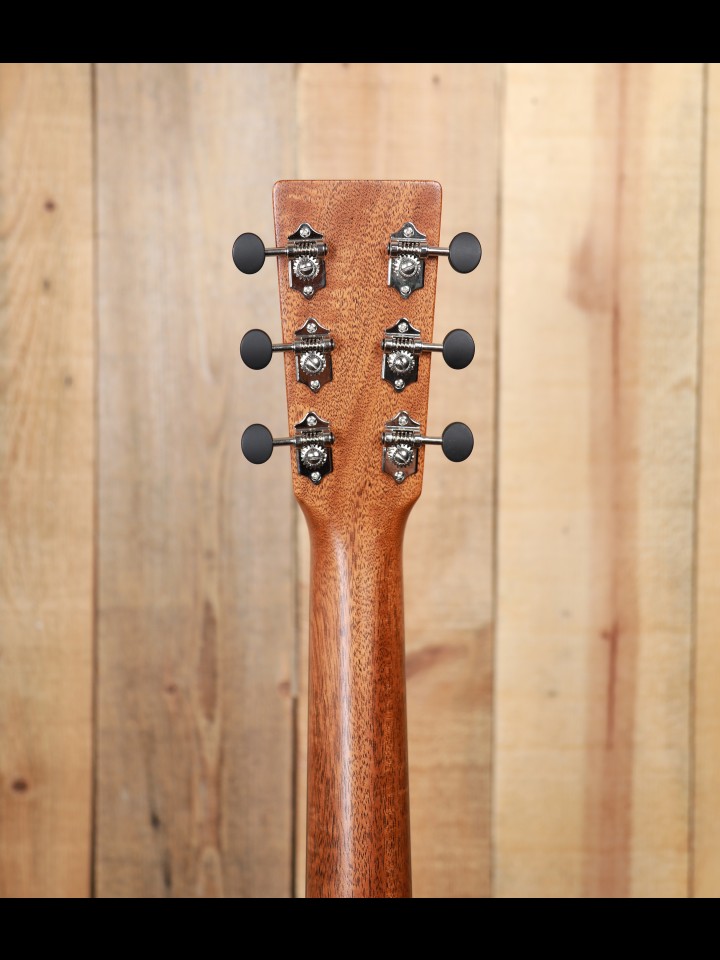 From our perspective, when Martin revamped the 15 Series of guitars a few years ago they hit a home run - they converted good and interesting guitars into fine and exciting instruments. The makeover was both functional and cosmetic. Now, the top, back and side are made with genuine mahogany rather than Sapele which is sometimes called African mahogany, and the neck is also made with genuine mahogany rather than a 'select hardwood'. Bone, not Corian, is used for both the nut and the custom compensated saddle, and the bridge pins are ebony rather than plastic. The fingerboard is now tastefully ornamented with diamond and square inlays instead of dots, and the top is dressed with a high quality Delmar tortoise colored pickguard. And finally, with a look from the past, the nickel tuning machines are vintage style with open gears and butterbean knobs.