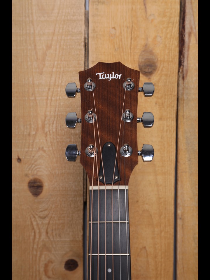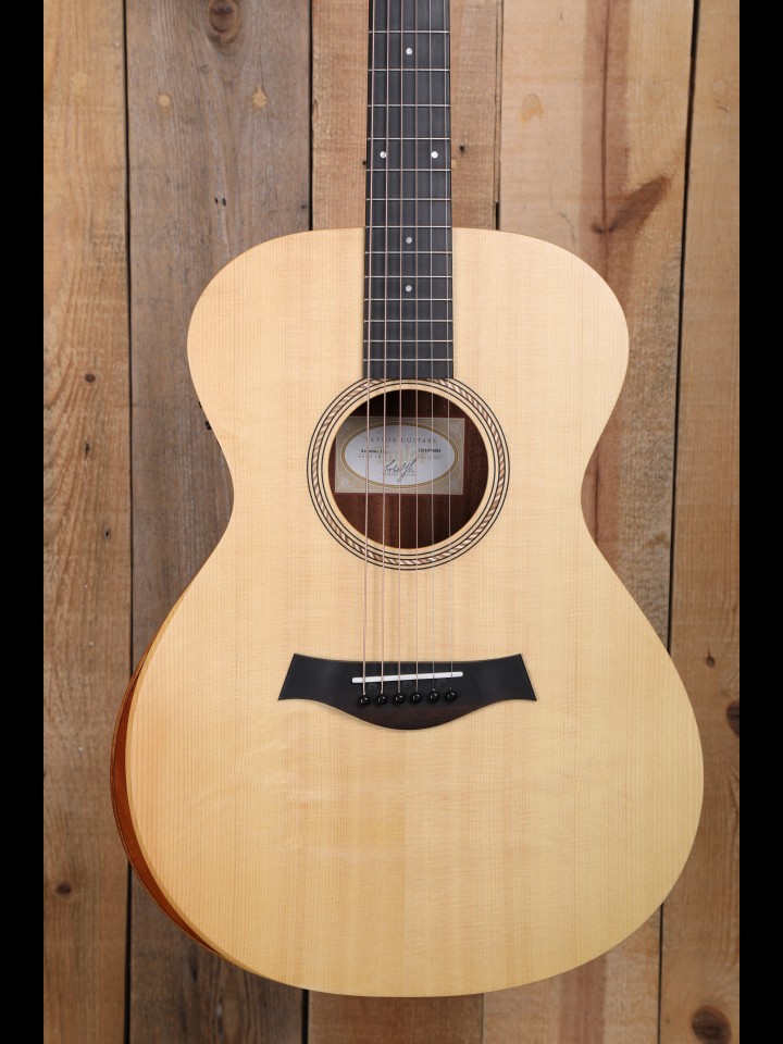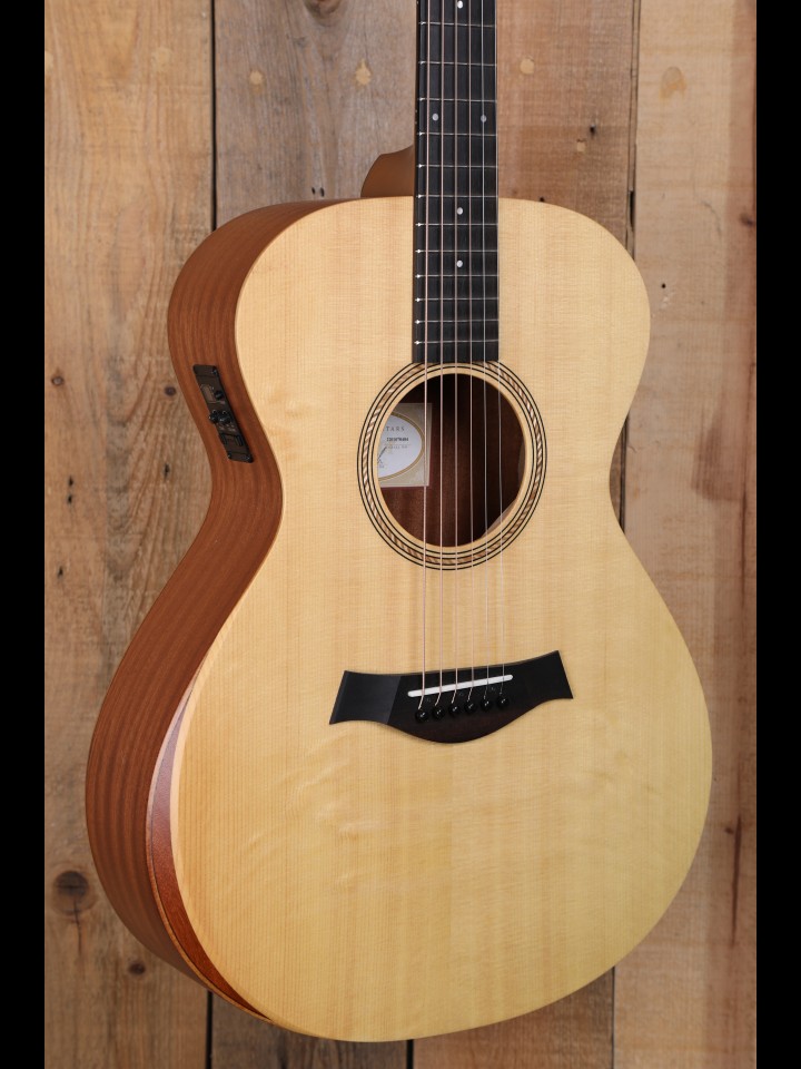"Our signature Grand Concert body shape brings our high standards of comfort and playability to the Academy Series, our line of budget-friendly guitars. Built with new players in mind, the Academy 12 incorporates a sleek body shape with our trademark neck design and an ergonomic armrest for a truly player-friendly experience. A slightly shorter, 24-7/8-inch scale length also contributes to the smooth feel of the Academy 12, making it easier to fret strings, hold chords, and bend notes as you learn to navigate the neck of an acoustic guitar. But the Academy 12 serves up more than just a comfortable feel, yielding a balanced, robust sound that mingles the sparkle of solid spruce with the punchy, responsive midrange of layered sapele. With that versatile sound and a forgiving, unintrusive design, the Academy 12 gives you the power to pursue your musical inspiration, whether it's your first guitar or a new addition for your collection." – From the Taylor website