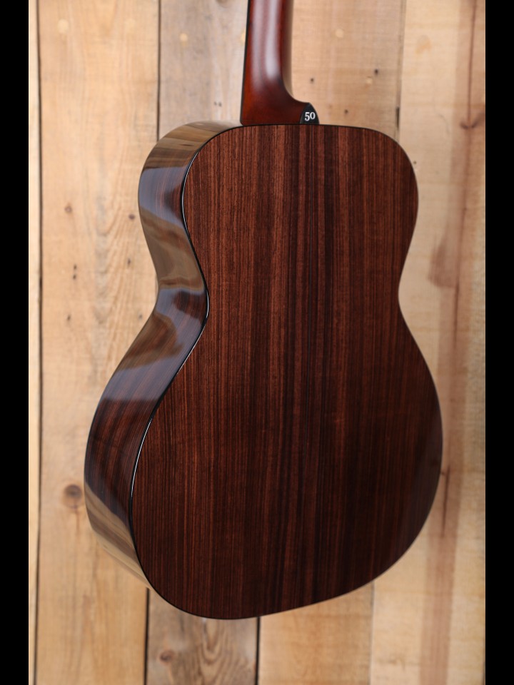 We have been privileged to represent Santa Cruz Guitars for more than 30 years, having first become a dealer in the early 1990s. Since that time, Santa Cruz has grown from relative obscurity to become one of most respected small producers of acoustic guitars in the world. As Richard Hoover and his great crew would undoubtedly attest, the journey to this point has been no walk in the park—running a small business of any sort, particularly one that is centered on hand-crafted instruments, is a tremendous challenge! Thus, we are very excited for our friends out in Santa Cruz as 2026 marks their 50th anniversary (quite coincidentally, 2026 also marks our 45th anniversary, so it’s celebrations all around!). To commemorate this momentous accomplishment, Richard and the gang are offering limited 50th Anniversary runs of five of their most significant models, beginning with the 1929 00 and the OM Pre-War (OM P/W). These Anniversary models are distinguished by a tasteful Mother of Pearl “50” heelcap inlay and a special interior label; but, more importantly, Santa Cruz has made a deliberate effort to offer these models at a more attractive price point.