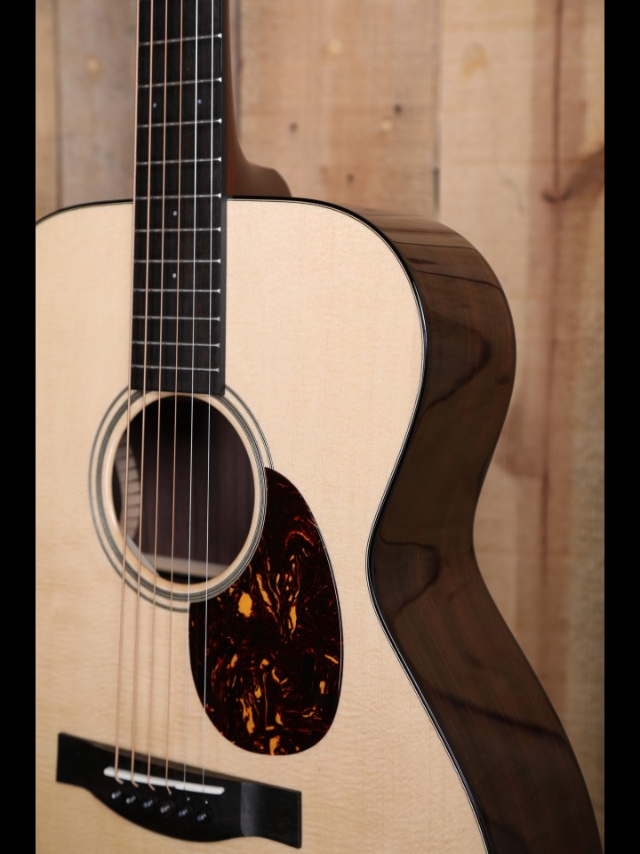 The choice of Sitka spruce (the current industry default for steel string acoustic guitars) for the soundboard on the OM P/W is admittedly a departure from established pre-war spec, where Adirondack/Red spruce would have been the default soundboard material. Even so, the pairing of Sitka spruce and Indian rosewood is one of the most effective, and therefore classic, combinations of tonewood “ingredients.” The Sitka spruce top delivers a distinctive clarity and sustain, as well as a broad dynamic range from the outset that then becomes enhanced as an instrument is exercised (i.e., played-in). Meanwhile, Indian rosewood, contributes a rich, harmonically complex, and colorful tonal quality to the overall voice of the guitar.