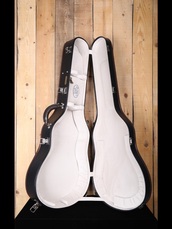 “Given the opportunity to hear a truly sophisticated guitar, players experienced a paradigm shift in what they thought possible. This time-tested design ensures large bass response and overall volume. The Pre War design package is presented with understated and elegant appointments to emphasize master grade materials, tone and workmanship. Under the hood, the Pre War design package honors its pre-WWII predecessors with an advanced X and scalloped top bracing. The OM/PW's versatility and ergonomics lend great appeal for traditional picking styles and impressive rhythm work. Expect the predominant bass and throaty presence of the surviving pre-war antiques. Includes a unique 50th heel cap and interior label.” – From the Santa Cruz Website