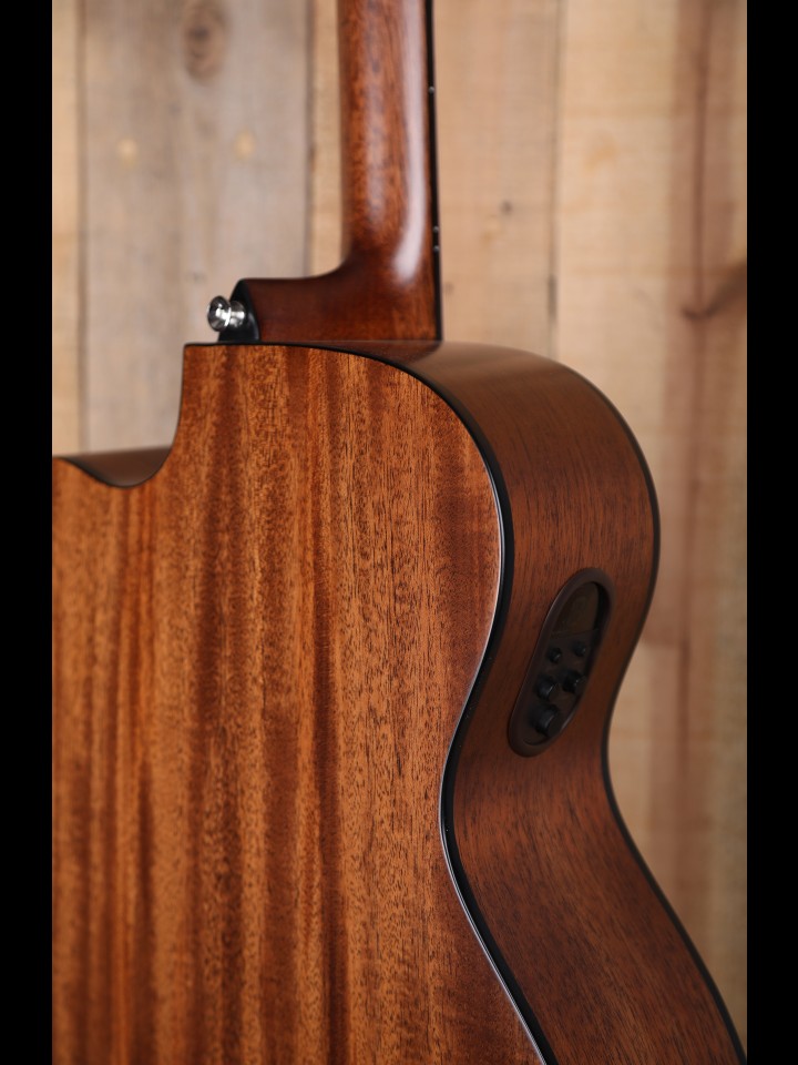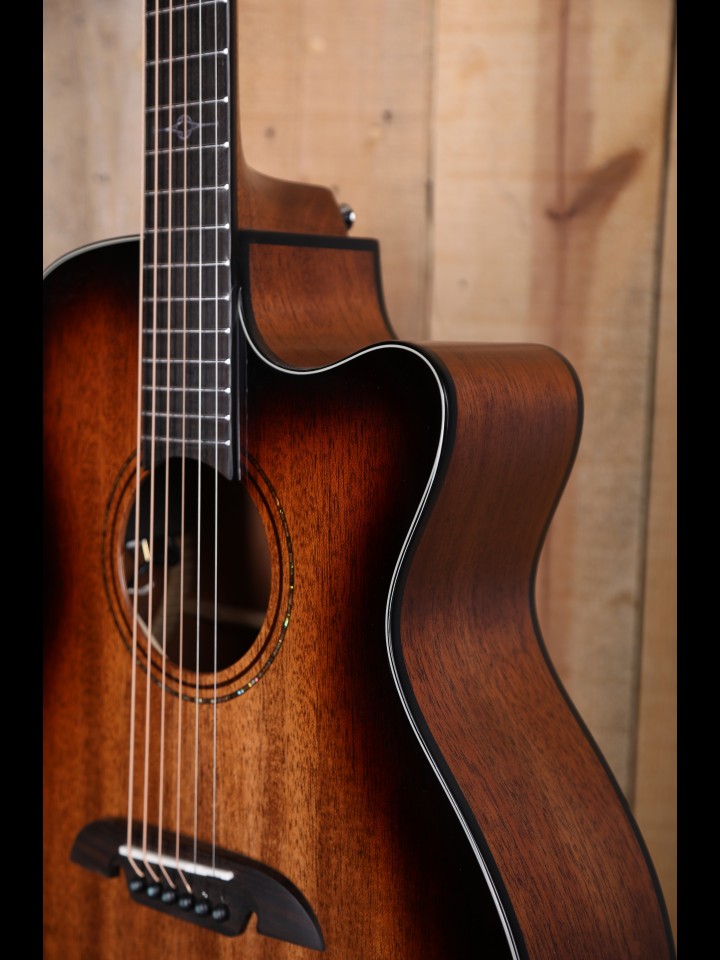The 66 models are beautifully finished and have a deep glass-like shine. Our Shadowburst on Mahogany brings out the grain to create a warm look to match its tone. Our mahogany top guitars have a focused sound with strong mids, great for recording and live work.