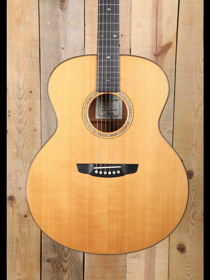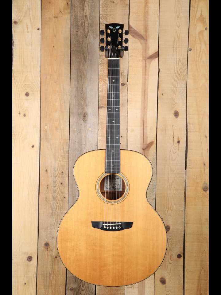 In his early days, Goodall honed his skills alongside the likes of Bob Taylor and Larry Breedlove in the American Dream workshop (which eventually morphed into Taylor Guitars, and otherwise spawned the Breedlove and Deering brands). Given their association in the formative years, it is perhaps not too surprising that the guitars produced by James Goodall, Bob Taylor, and Larry Breedlove exhibit similar focus on contemporary voicing and innovative design elements. Yet, of the three makers, Goodall most faithfully stayed the course of the small production shop. His shop in Kailua-Kona, Hawaii eventually reached a production capacity of hundreds of guitars a year; but, following the closure of the Hawaiian shop in 2006, James now builds exclusively with his son, Luke, producing approximately eight guitars a month. Due to his small production approach, Goodall was able to distill and refine the elements of this contemporary voicing championed by the now major manufacturers like Taylor and Breedlove. As a result, his instruments offer the player all of the clarity and precision inherent in this modern approach to voicing, but with an enhanced degree of responsiveness, dimension and overall presence.