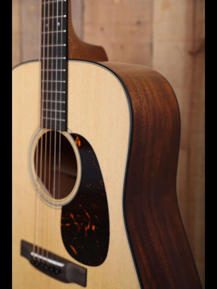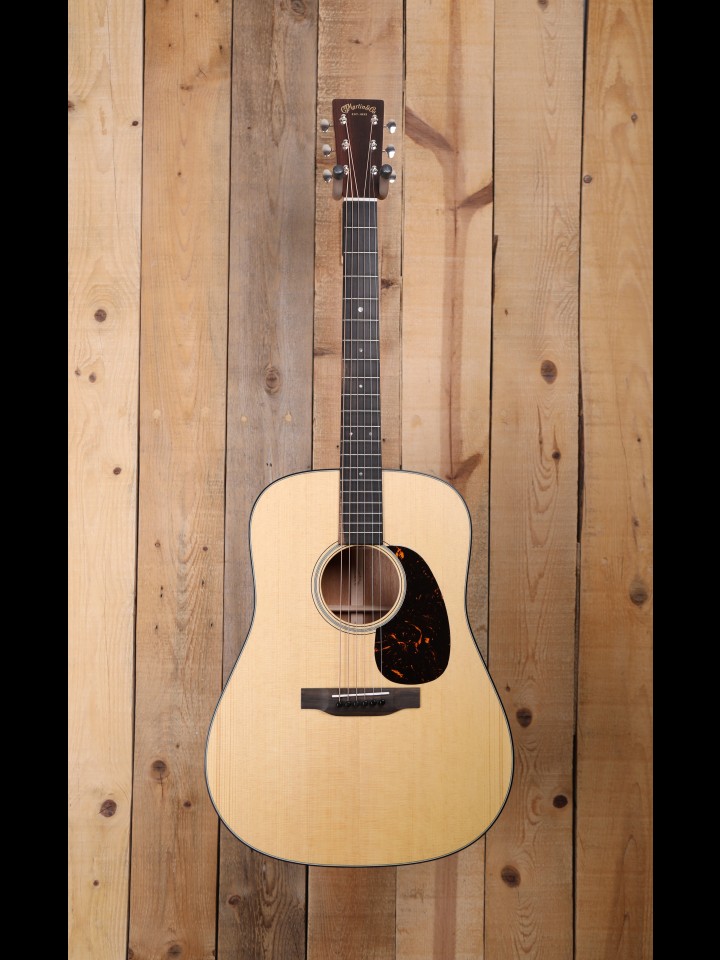 "The Martin D-18 guitar is universally recognized as an American classic. What has made it iconic is its uncommon natural tonal balance and its honest, direct and faithful voice. And, even though this model has had structural changes over the years, the combination of its solid mahogany back and sides with a solid spruce top is a time tested mating that has proven tonally effective over and over again. Today, some players often prefer D-18's more from one era than another, and, in Martin's current catalog, different iterations of the D-18 are now offered which are designed to represent past flavors of this model." - From the Martin Website