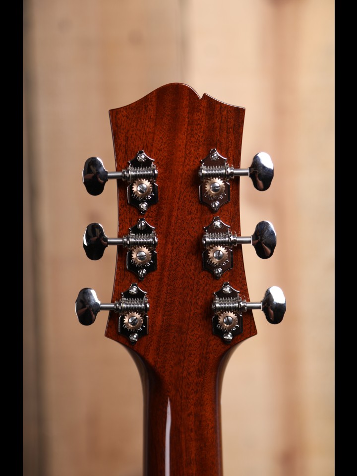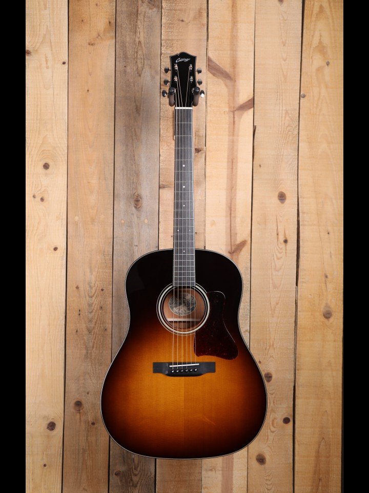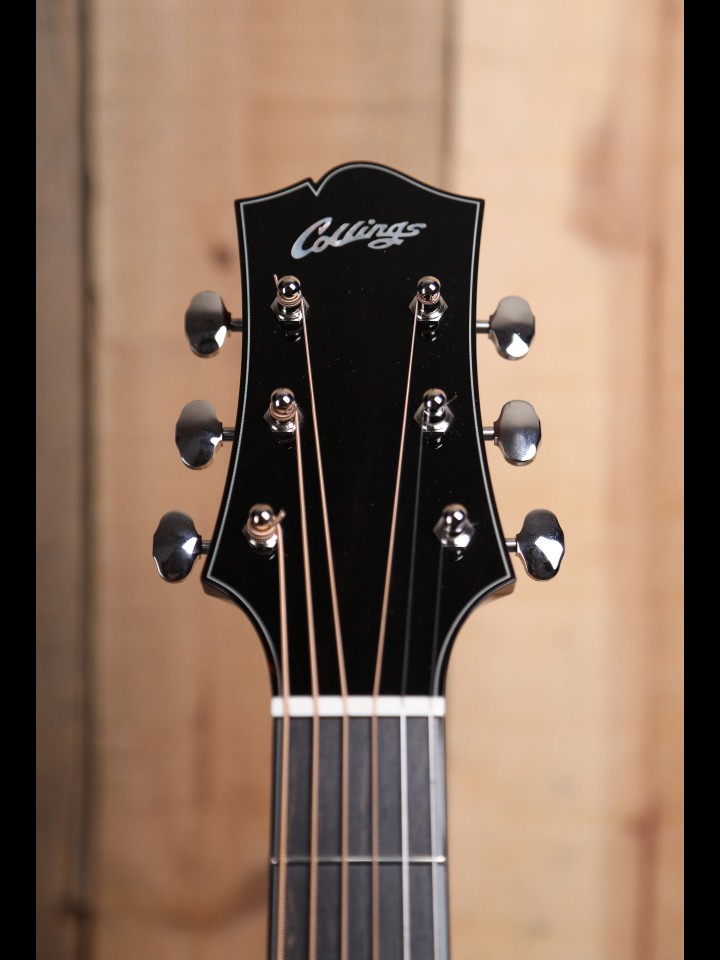 "The Collings Jumbo, or CJ, is our version of the classic slope-shouldered dreadnought, a shape that has enjoyed renewed popularity in recent years. While the CJ is similar in width and depth to the traditional dreadnought, it has a distinctly different tone. Despite its large size this model works well with the optional shorter string scale, resulting in a somewhat percussive bottom end ideal for acoustic blues or other styles that benefit from a more controlled bass response. Of all the Collings body shapes, this is the one most often requested with a sunburst top finish, and the wide range of wood options, neck widths, and string scales allow the CJ to be many different guitars to a wide variety of players." - From the Collings Website