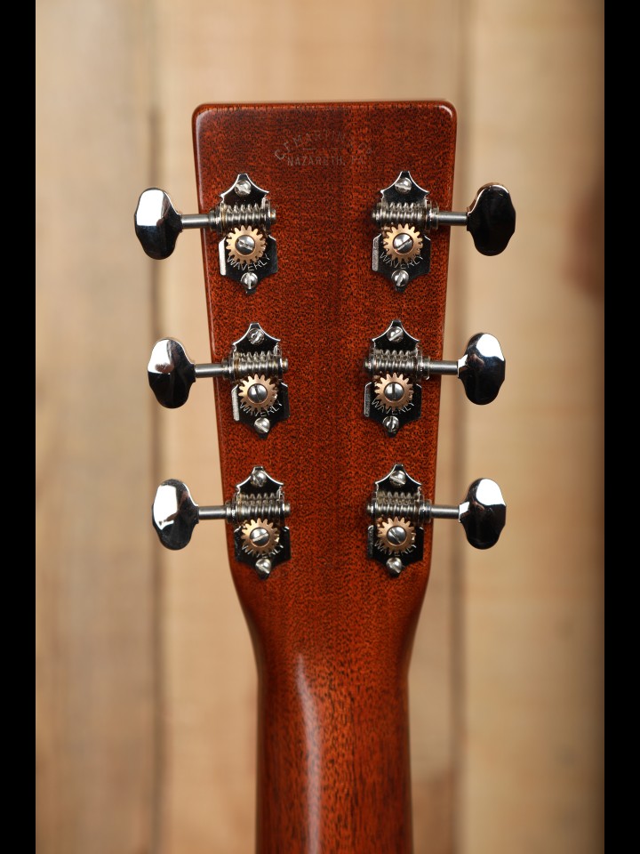 Interestingly, at the time, the term OM, or “Orchestra Model,” simply referred to the 14-frets clear of the body design. Subsequently, there were OM versions of dreadnoughts and other body sizes. However, eventually the OM designation became its own thing, denoting a 14-fret 000 body with a long 25.4” scale and a wider 1 ¾” nut width—by contrast most standard 000s of the modern and post-modern era typically have a 24.9” scale length and a 1 11/16” nut width.