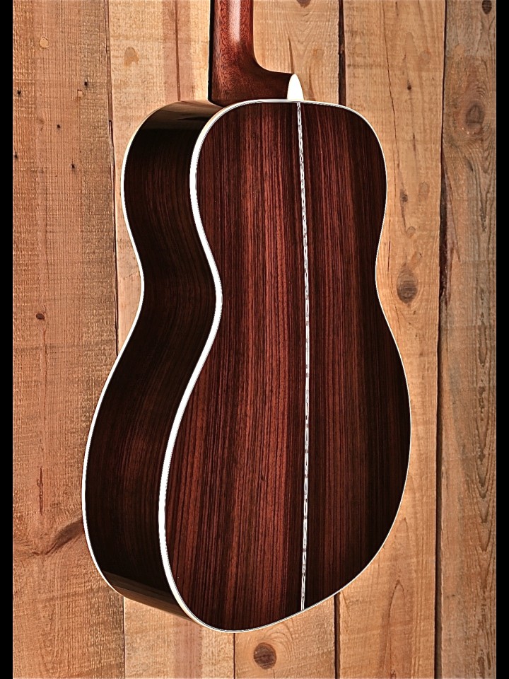 "Scalloped X-bracing, herringbone trim and antique white binding offers a bold, complex tone and timeless style. Sitka spruce and East Indian rosewood pair with a sleek modified low-oval neck for a feel you won't want to put down and comfort that means you won't need to. Also available in Sunburst and Ambertone finish." - From the Martin website