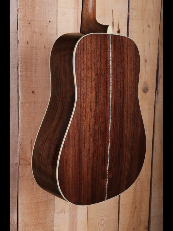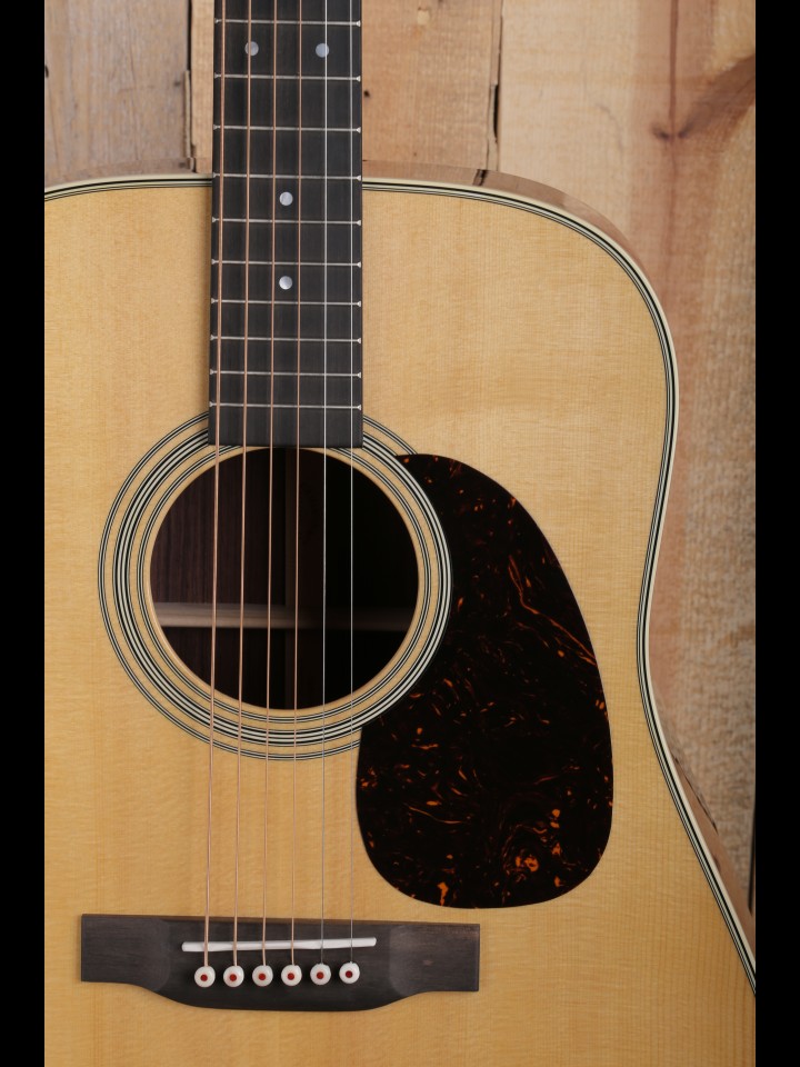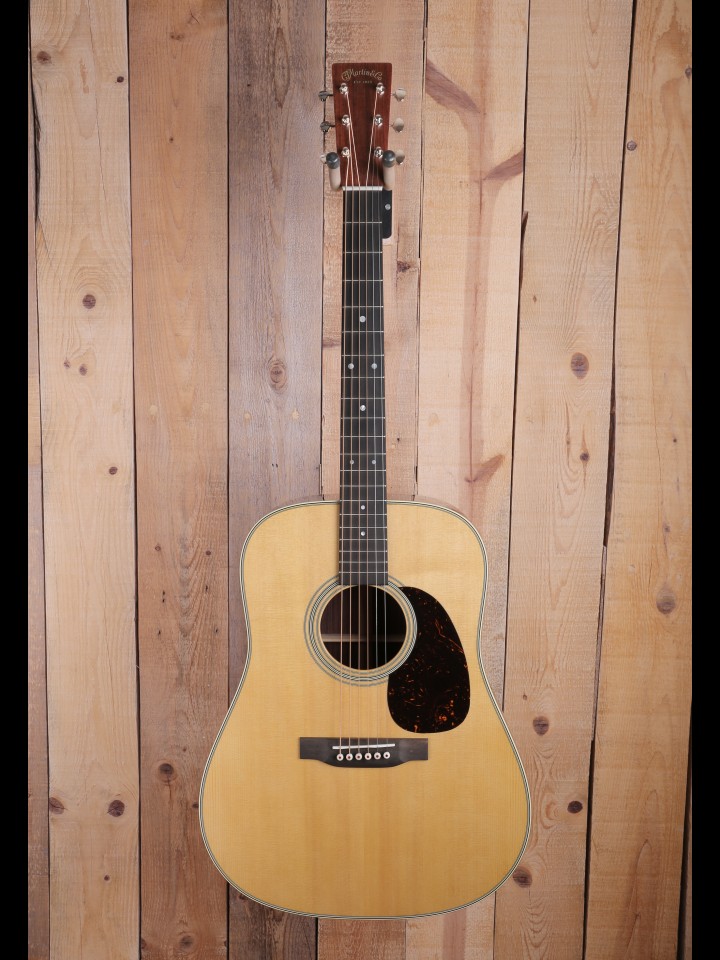 “Sometimes innovation is in the details and this is certainly true with Martin’s re-imagined D-28. After nearly a century at the helm, and as the quintessential workhorse of music legends like Hank Williams, The Beatles, Johnny Cash, Neil Young, Bob Dylan, and so many more, Martin's legendary D-28 has been lovingly and artfully enhanced. ‘The post WWII D-28 had a slightly different look than its predecessor and became the centerpiece of the folk and folk rock movements at their pinnacle in the 1950s and 1960s,’ says Chris Martin, Chairman and CEO of Martin Guitar, ‘We have extracted the finest features from the D-28 of both my grandfather’s and my father’s respective eras.’ The all new D-28 blends the rich history of the guitar with Martin’s newest and most heralded innovations. The 184 year old guitar maker has combined vintage appointments, including open gear tuners, an aged toner top, antique white accents, and a faux tortoise pickguard with a new neck profile to give D-28 enthusiasts a modern feel and comfortable playing experience. Martin has also added forward-shifted bracing to allow greater vibration of the top. The legend just got better!” - From the Martin website