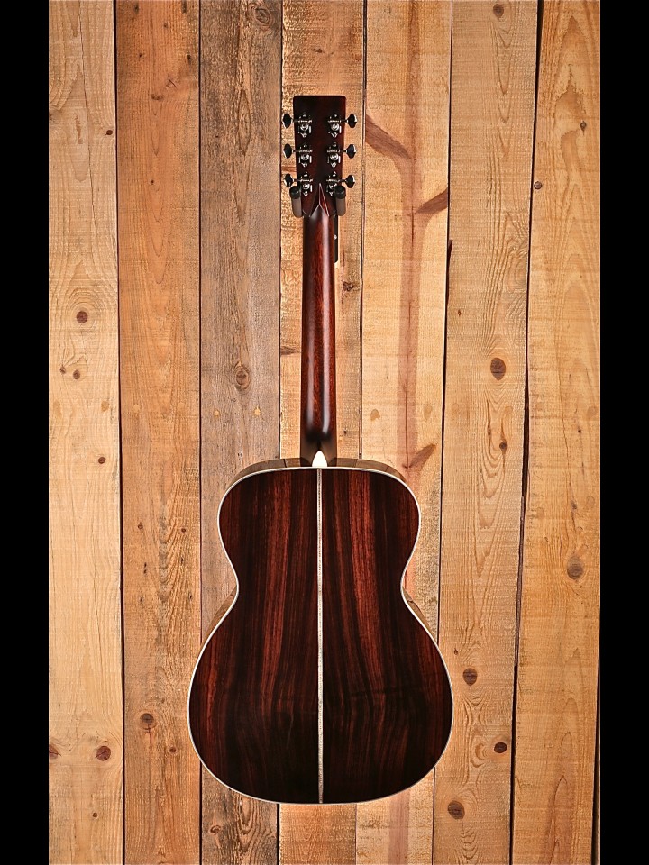 Special features of the Traditional Series guitars, which are inspired by classic acoustic guitar designs, include: all solid wood construction with hand-carved scalloped braces, forward shifted X-brace, dovetail neck joint, and hand polished nitrocellulose finish. The E8 OM-TC is Eastman’s fine take on a vintage 000-28. The star of the show is the “Thermo-Cured” or Torrified Sitka Spruce top, which simulates the process of decades of aging that yields a sweeter, drier voice. This top combined with the Rosewood back and sides, yields a clear and warm response, with a slight midrange scoop. Though quite versatile in general, the E8 OM-TC is a fantastic fingerstyle or lead guitar.