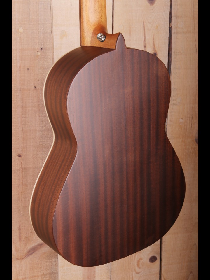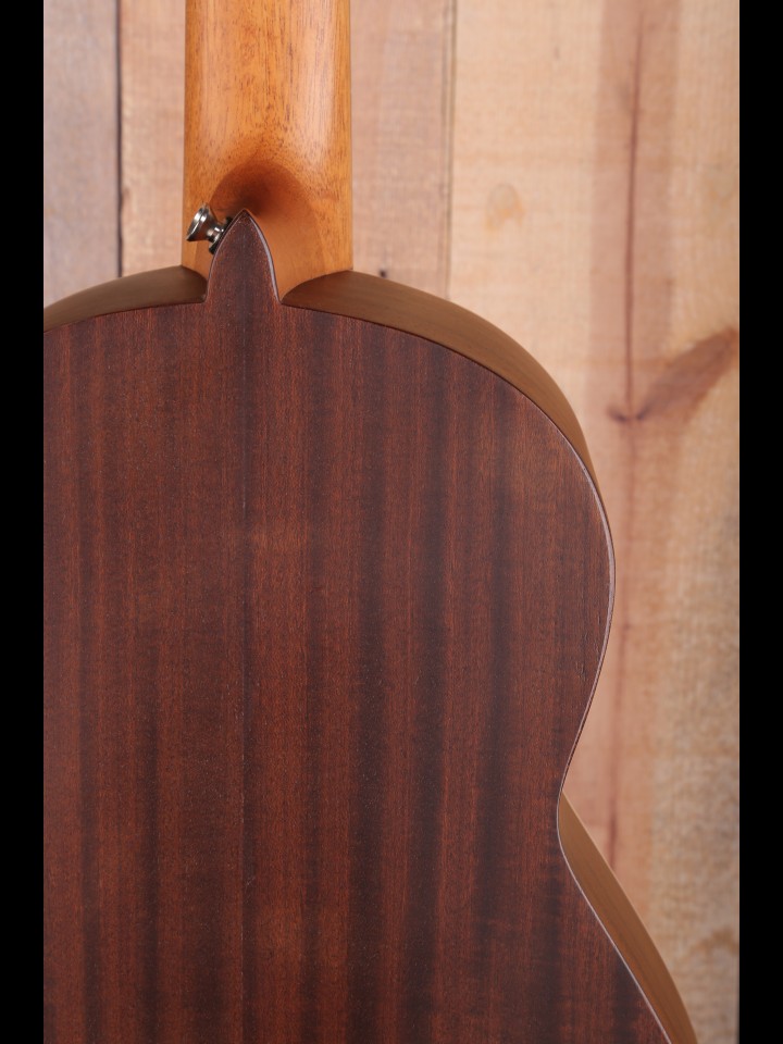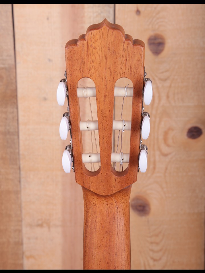The 401op Requinto still has many features of a full sized classical guitar, just at a smaller scale. Having these ratios present will get the new player ready for the dimensions of a full scale. The nut width of a classical guitar is known to be quite wide and a bit of a learning curve for folks switching over from steel string. This guitar has a 1 7/8” nut width, making it very comfortable and similar to a steel string. The top of this guitar is solid cedar, giving a nice projecting tone and a warm sonic profile. All these factors taken into account make this little nylon string a wonderful choice for a beginner.
