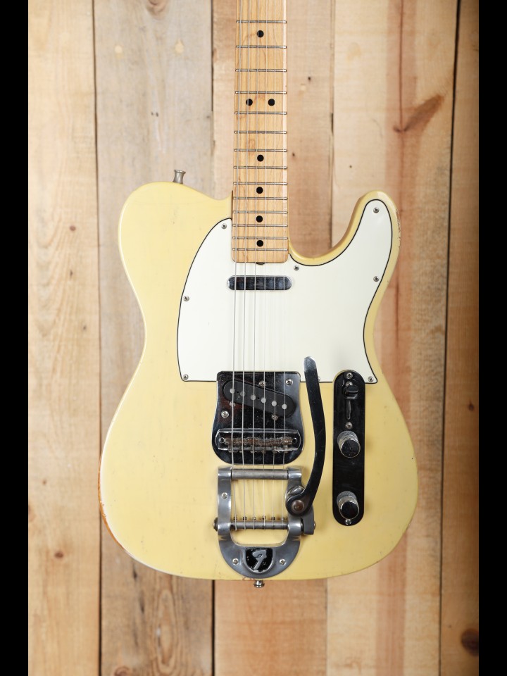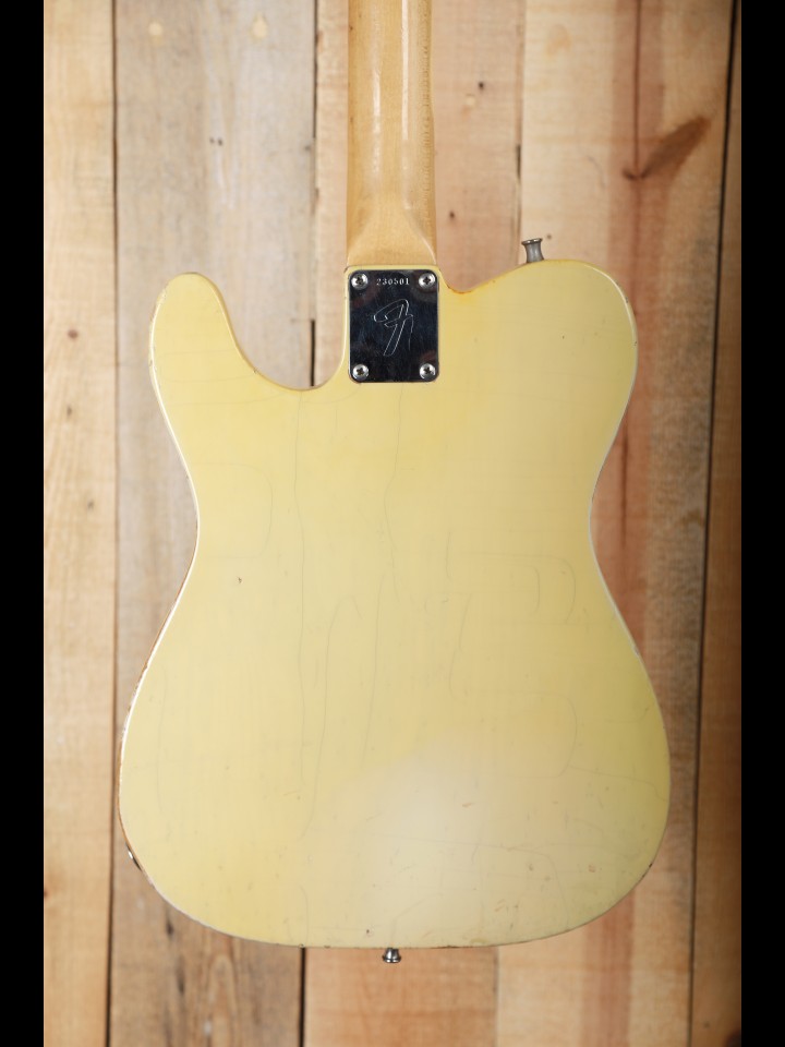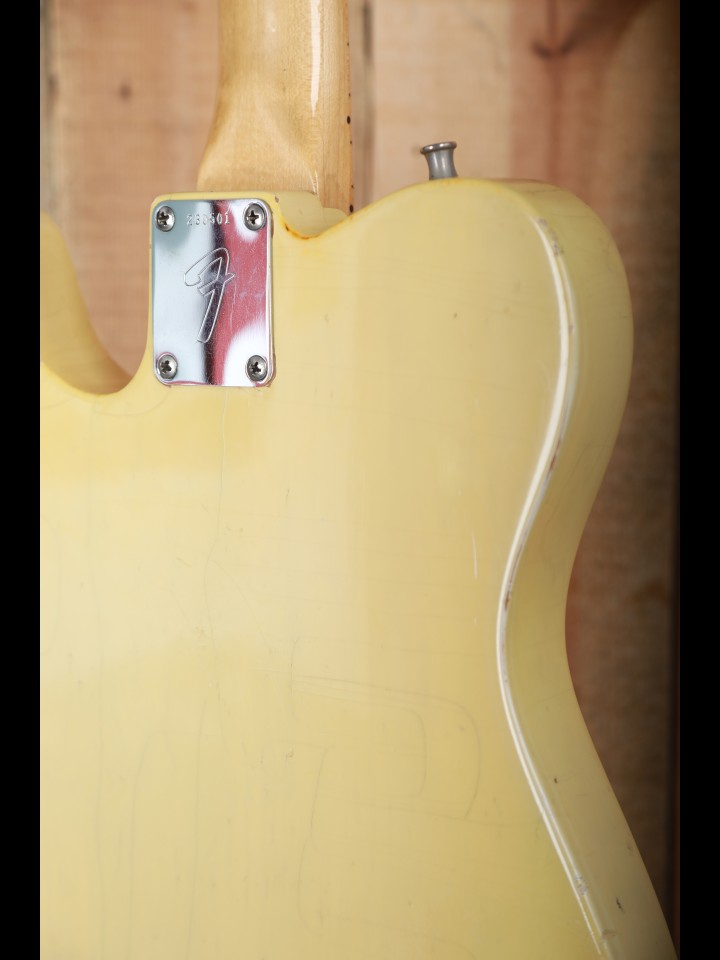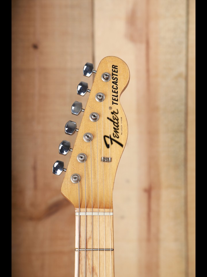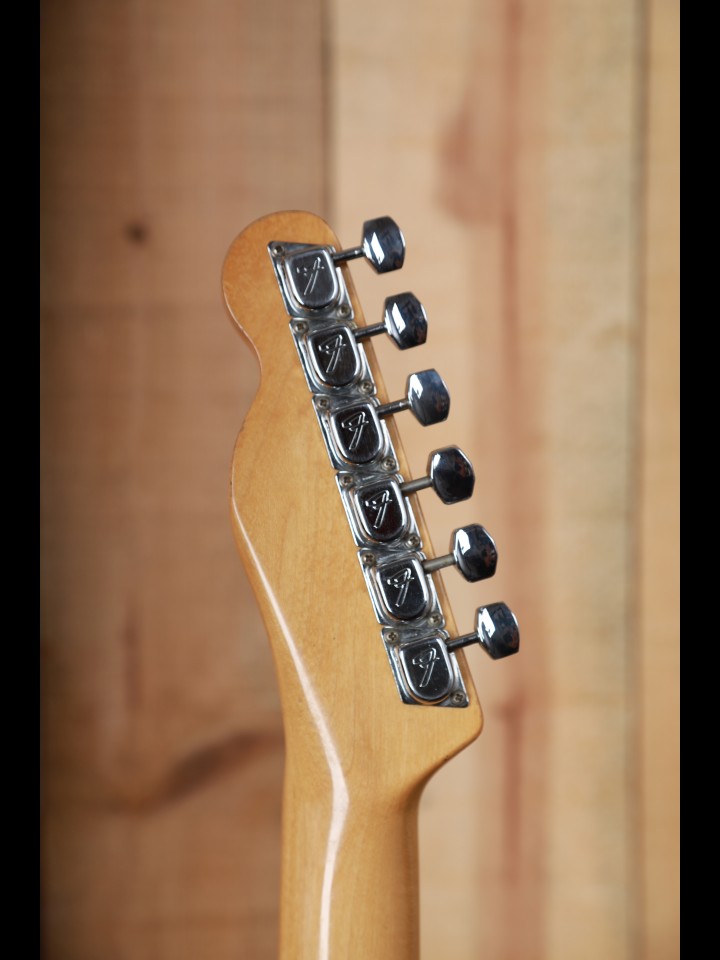 This Telecaster also is outfitted with 1 meg pots, which Fender was using more and more at the time. These give this guitar the ability to be astoundingly bright if desired. This guitar possesses the warm but twangy Tele tone in spades and has to be heard to be fully appreciated. In addition to this electronic feature, this guitar certainly does feel like an older guitar. The wood has been broken in from years of playing and sings like no other. As an added byproduct of years of wear, the lacquer is still somewhat shiny but has a wonderfully played-in feel. Needless to say, this guitar sounds as good as it looks.