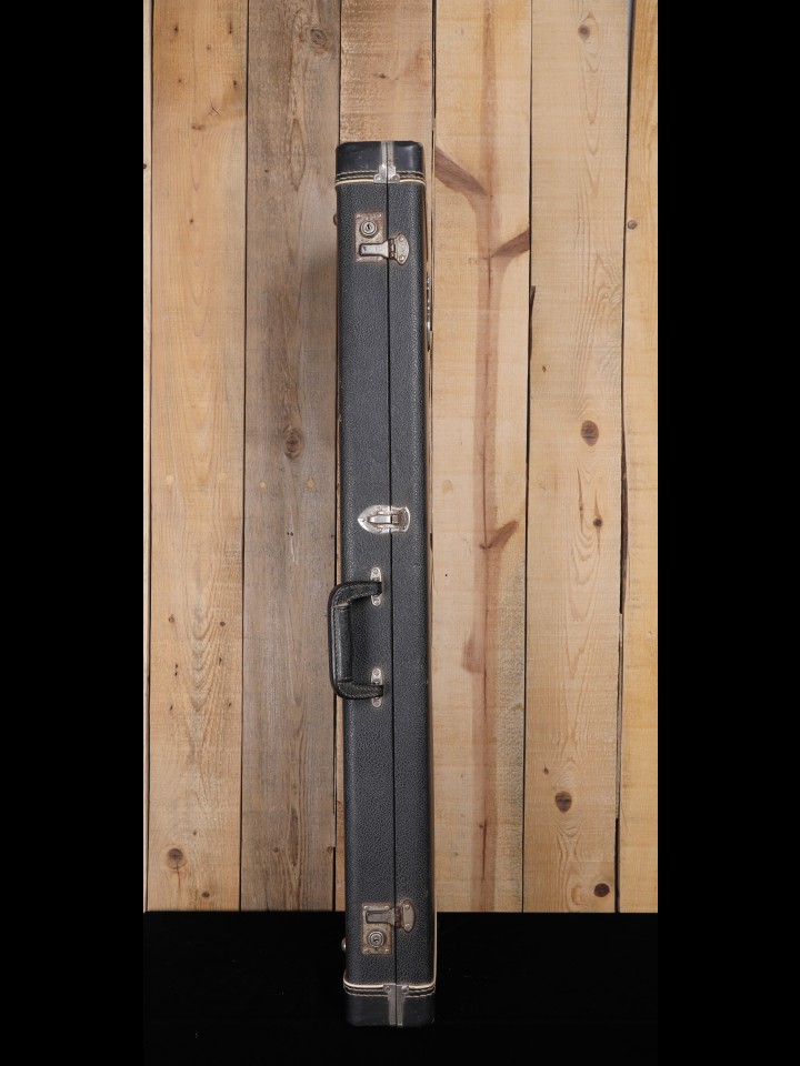 As a guitar of a certain age, there are various finish dings on the body and neck consistent with regular use, most notably some chips through the finish on the sides of the body and on the top at the bass side horn; second fret seems to have been modified and/or replaced; one neck bolt is seemingly stripped and loose – VERY GOOD + condition