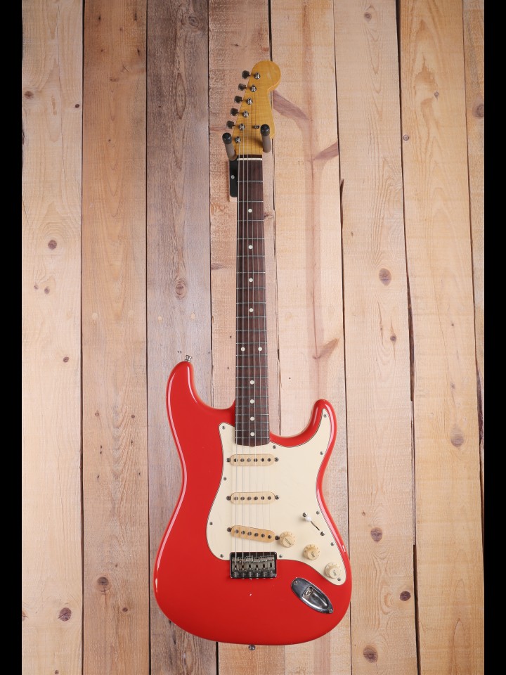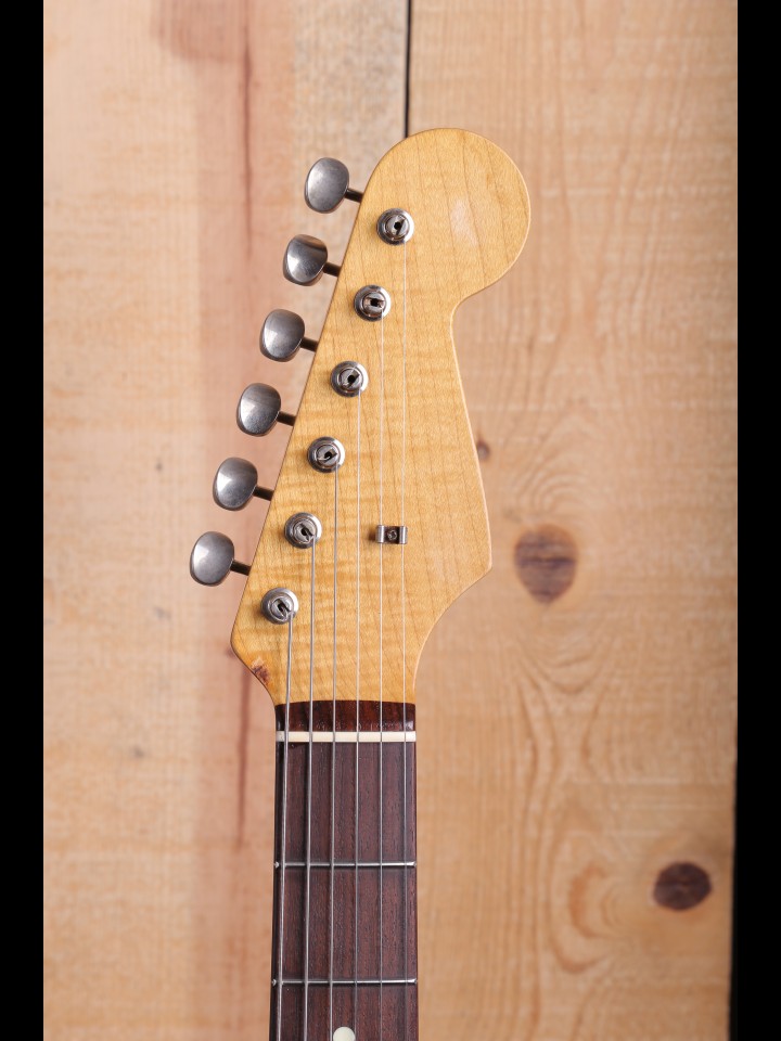 The Partscaster is believed to have been assembled from AllParts supplies, in an effort to recreate the mojo of early 60’s Fender Stratocasters. With natural relicing, a fast fingerboard, and a set of Seymour Duncan Antiquity 1 Texas Hot Pickups, this strat sounds and plays as cool as it looks, and would be a fantastic tool for players of most styles.