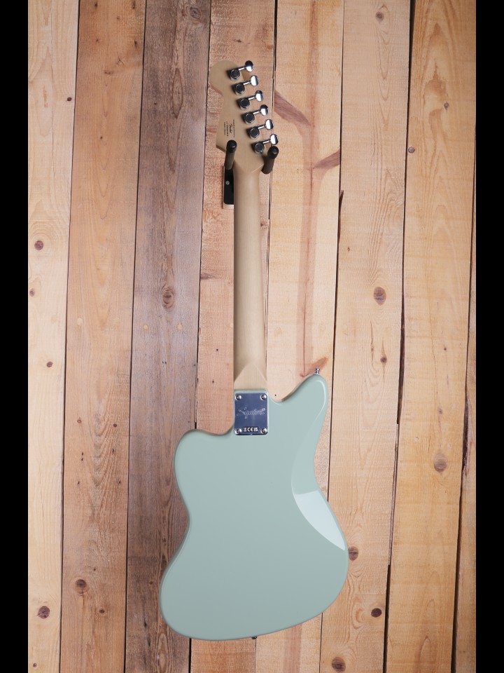 "The Squier Mini Jazzmaster HH is the perfect companion for players seeking a reduced-size instrument with classic styling and familiar Fender tone. Highlights include a thin and lightweight body, an easy-to-play “C”-shaped neck profile, dual Squier humbucking pickups with 3-way switching for sonic variety, and a hardtail bridge for solid tuning stability." -from the Fender website