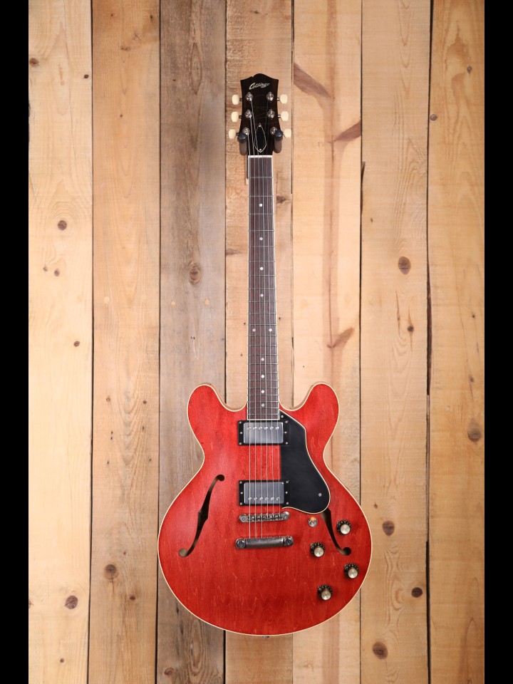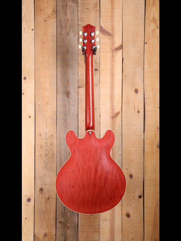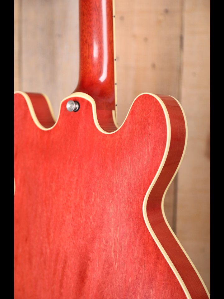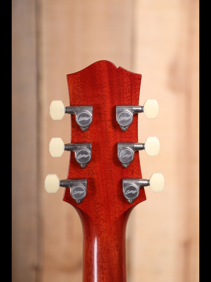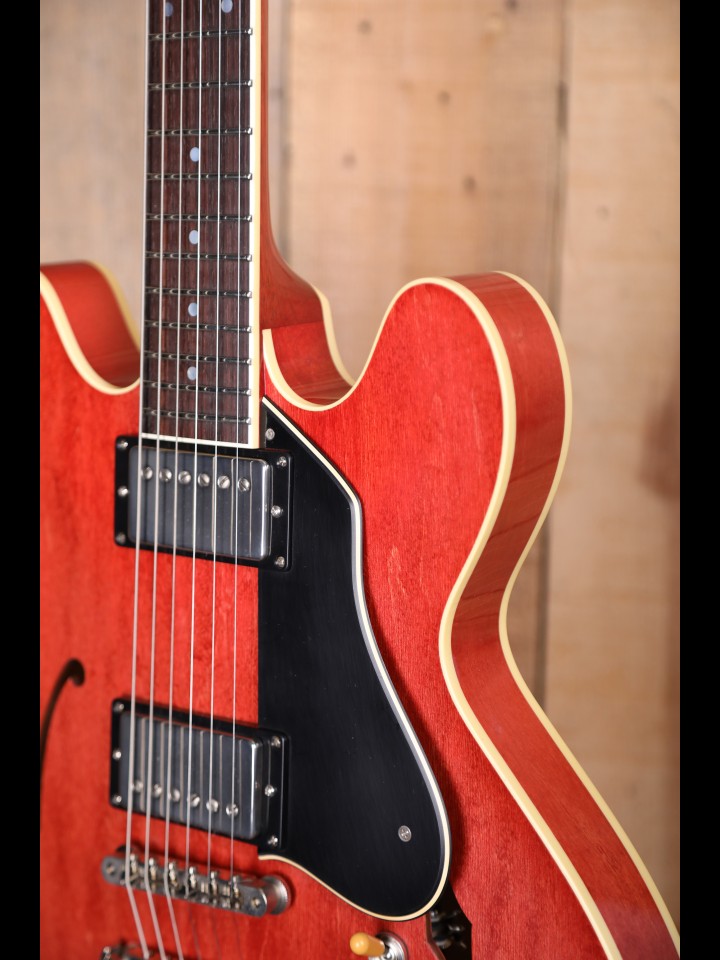 Drawing inspiration from the best instruments of the 1960s, our newest offering in the I-35 lineup provides an exceptionally loose and organic feel, achieved through a ground up reworking of everything from its laminate and center block recipes to its neck construction. Custom Throbak pickups and Bumblebee capacitors bring its open, acoustic response to life, expanding its versatility and proving that, although it looks every bit the part of a time-tested instrument, its appeal is more than just skin deep.”-from the Collings website