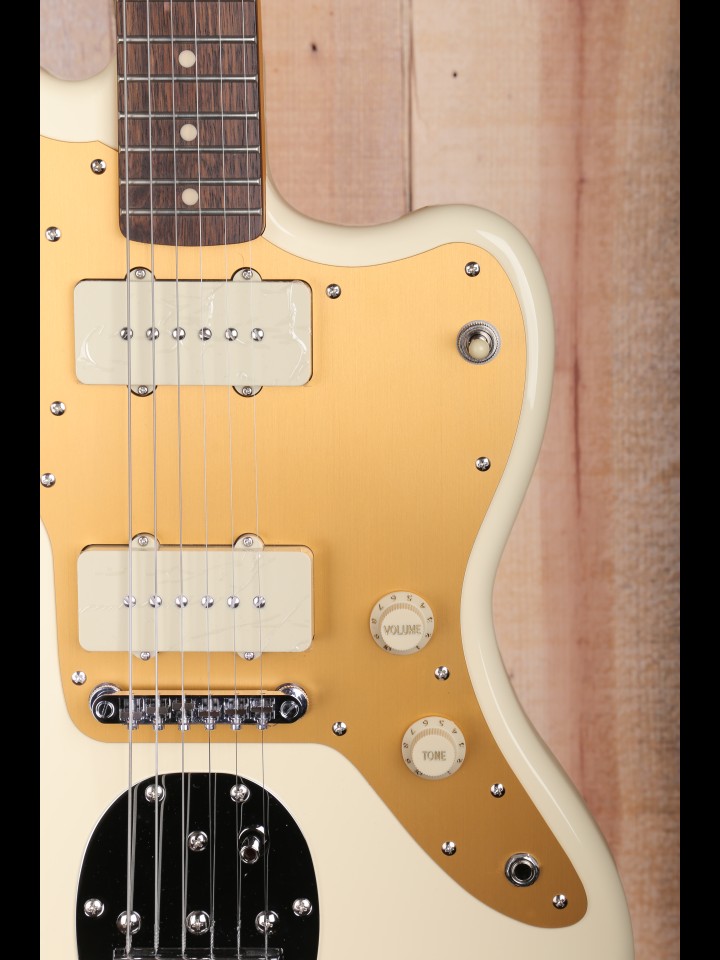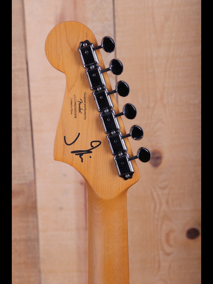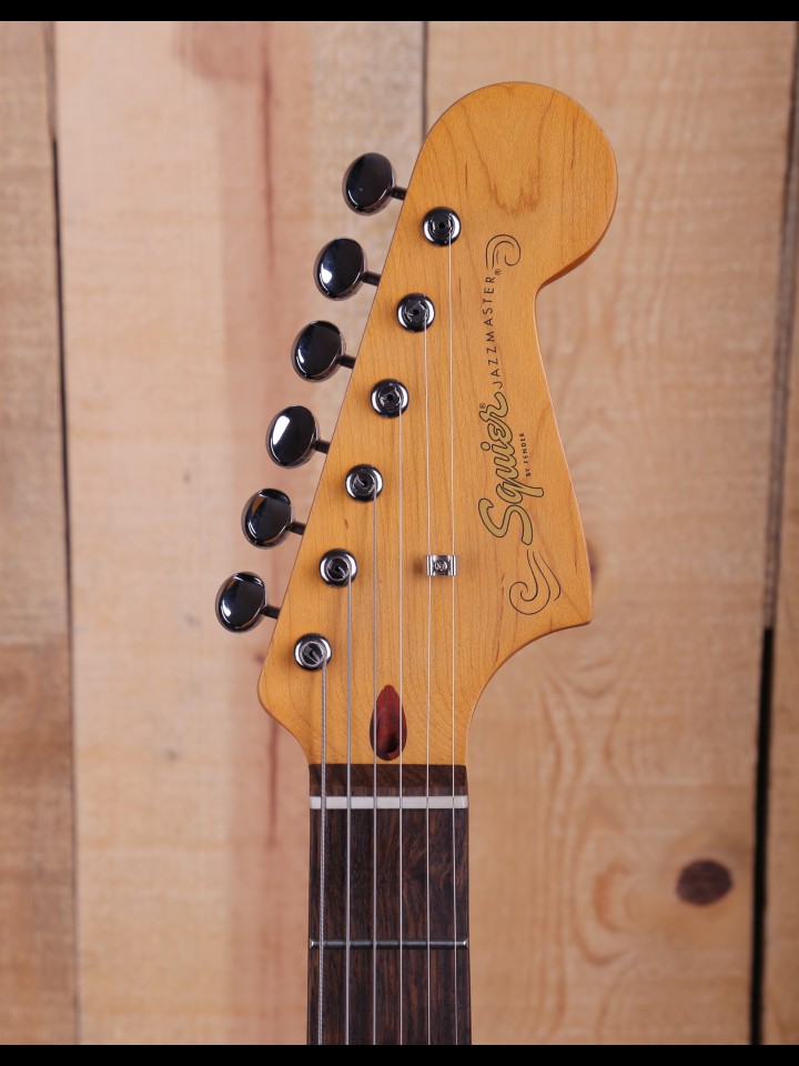 "Squier honors alt-rock godfather and Dinosaur Jr. leader J Mascis with a striking Jazzmaster guitar model that delivers as much massive sound and performance as its namesake. The pickups, hardware and finish are all specified by Mascis himself for tremendous tone and value. Only one instrument is good enough to bear his signature on his headstock - the J Mascis Jazzmaster" - From the Fender Website